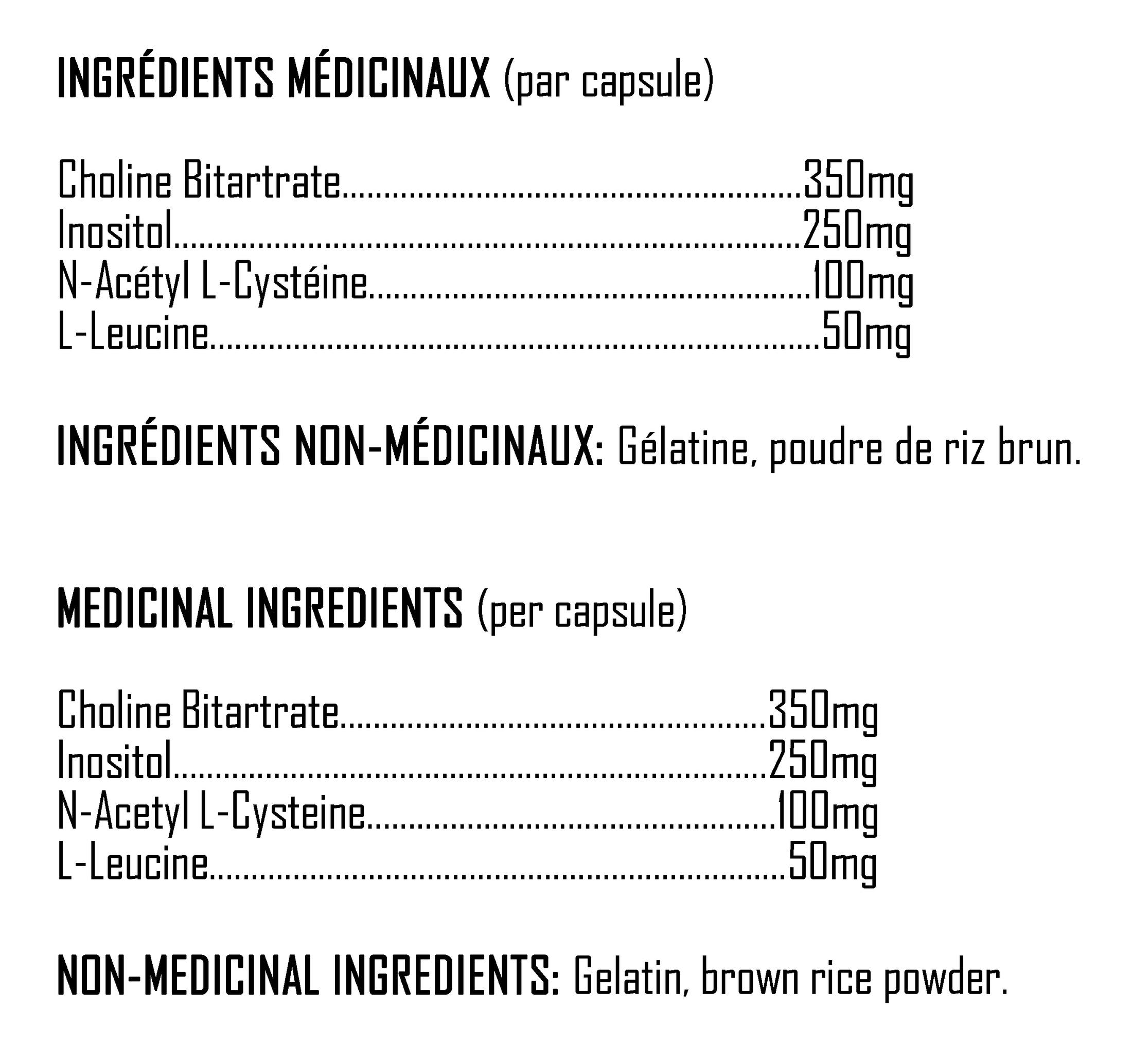 La choline et l’inositol sont des agents lipotropiques nécessaires pour le métabolisme des gras.